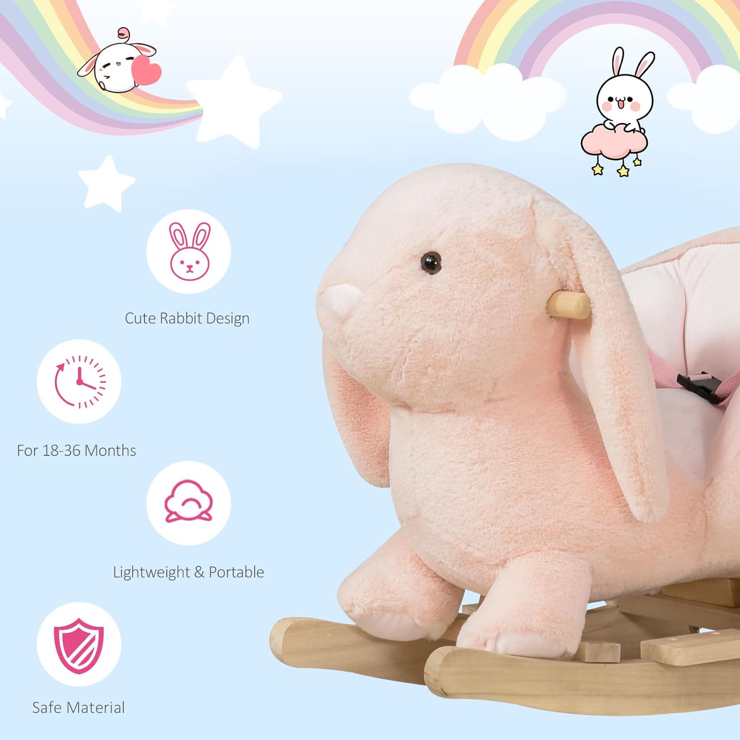 Whether she is "nibbling" through an imaginary garden or providing a cozy, wrap-around seat for a quiet afternoon, she is built for a soothing, rhythmic glide. She’s more than a toy; she’s a plush companion ready to keep your little one snug and secure as they discover the joy of movement.