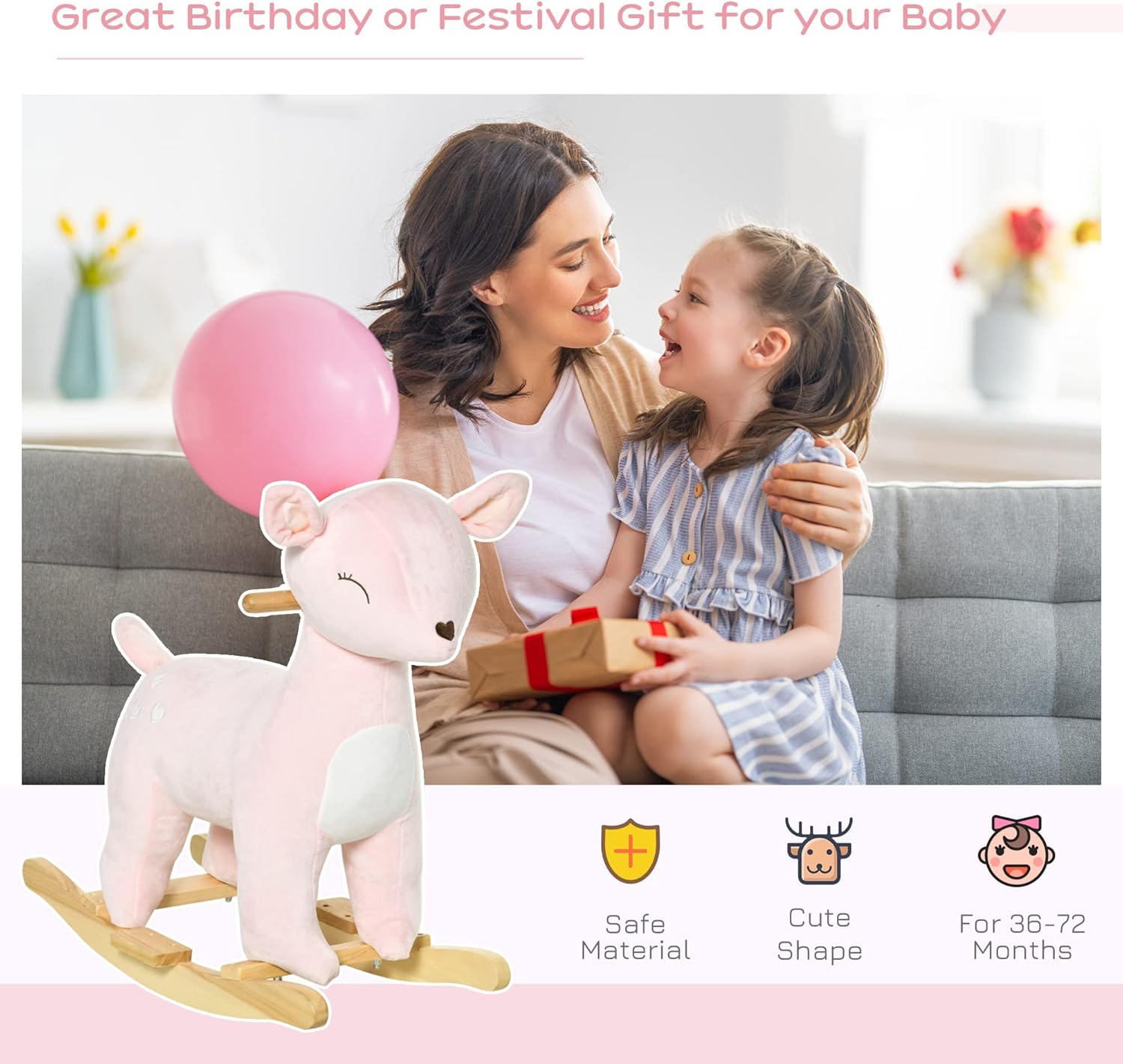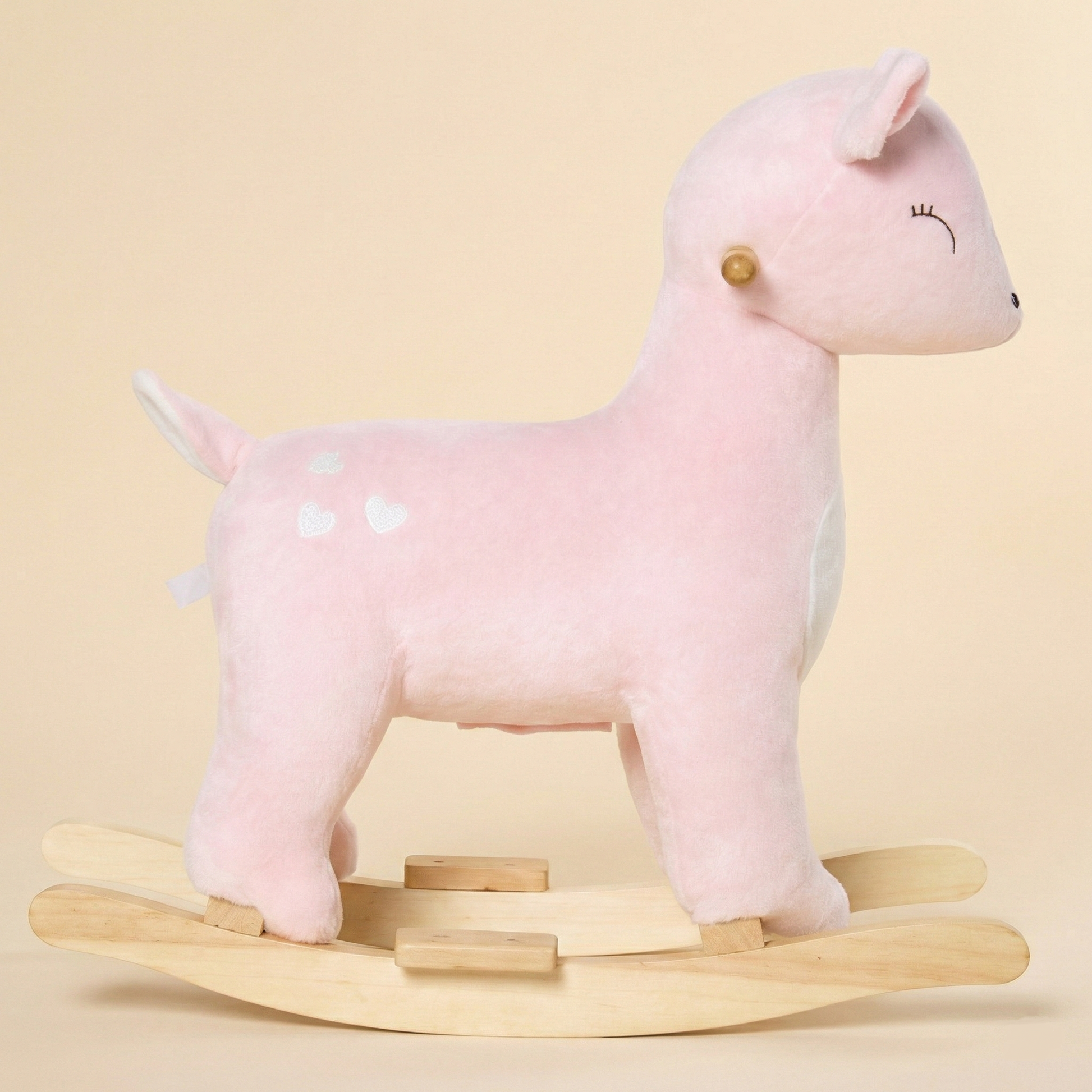 Dahlia isn’t just a rocker—she’s a graceful forest friend curated for your home. With her soft blossom-pink fur, delicate heart embroidery, and sweet sleeping eyes, Dahlia is designed to be a whimsical centerpiece in any boutique playroom or nursery.