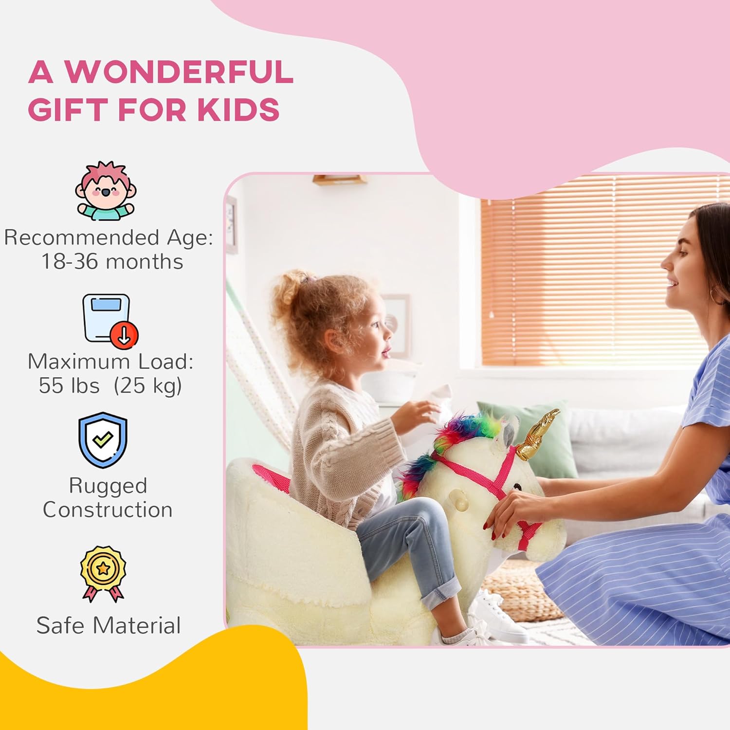 Whether it's the centerpiece of a first birthday or the favorite corner of the playroom, she’s built for soft rides and big imaginations. Simple, beautiful, and oh-so-huggable.